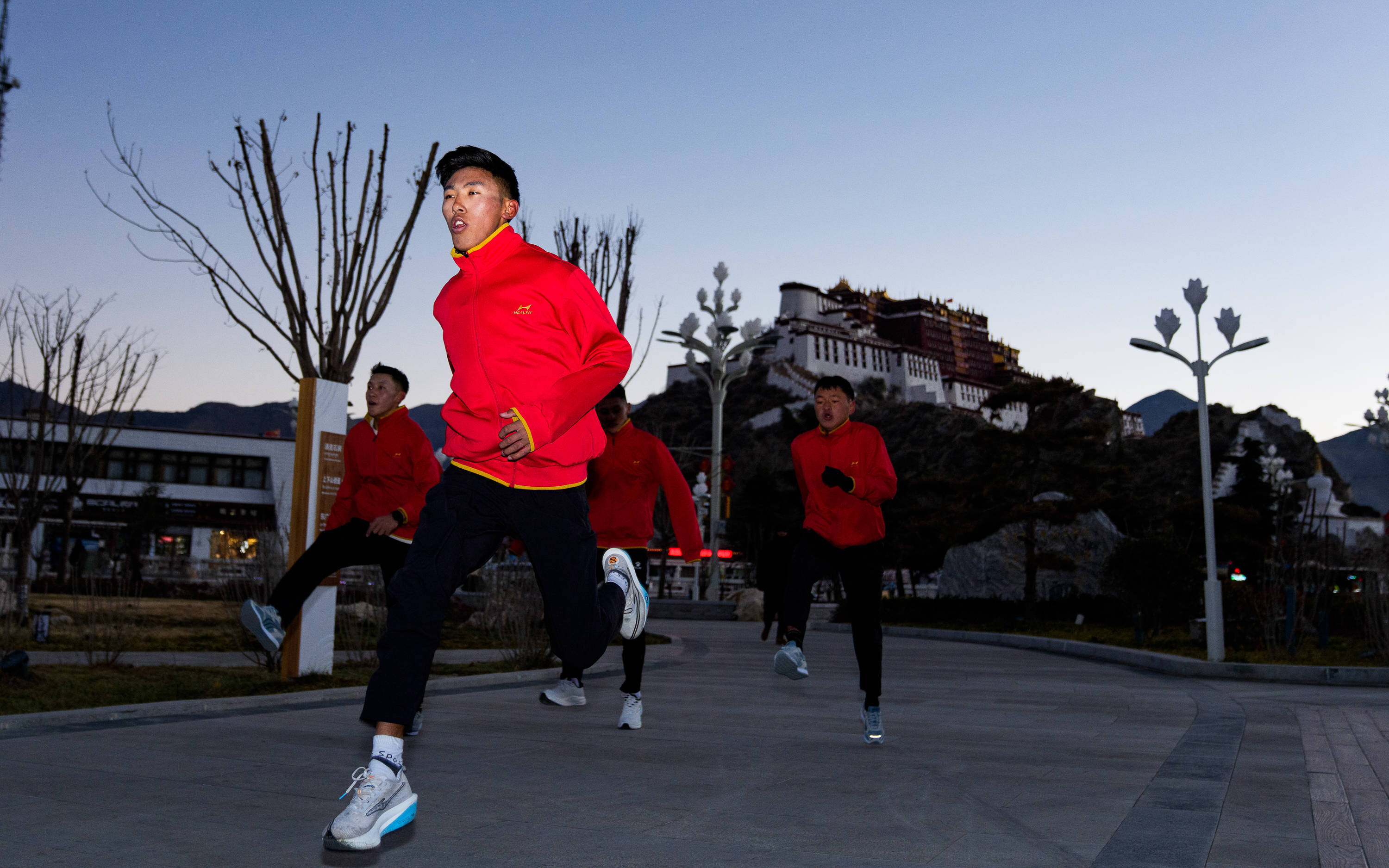 新华社拉萨12月13日电(记者丁增尼达)天边泛起鱼肚白,索南加参眯着眼望了望东边,接着戴上了墨镜。在拉萨冬日清晨的凛冽寒风中,这个19岁的藏族运动员开始了晨练。他的额角凝着薄汗,呼出的热气伴着粗重的喘息声,一团团融进寒风里。天光越来越亮,只有在墨镜的保护下,他的眼睛才能适应白昼的光线。