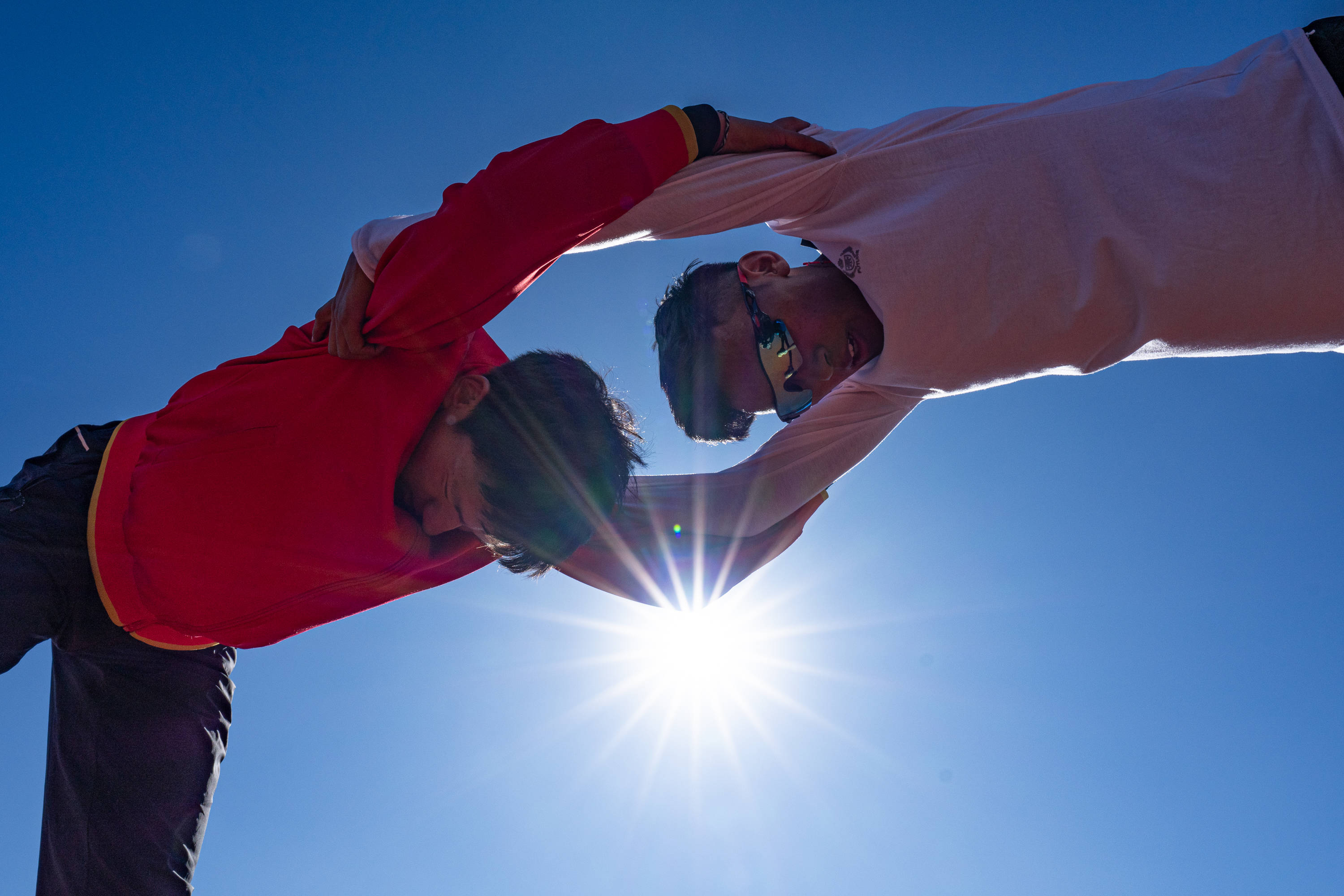 12月2日,索南加参(右)在西藏自治区竞技体育管理中心和队友一起拉伸。新华社记者 丁增尼达 摄五年间,索南加参的墨镜坏了一副又一副。他的眼睛周围被墨镜遮挡的部位,和饱经高原烈日照射的黝黑肤色之间,有了一条“泾渭分明”的分界。他也曾向往田径场外的世界。一次,他因不能去看赛马节表演而和教练闹了情绪。直到他发觉,停训一周后退步真的很大,才彻底开始安心训练。